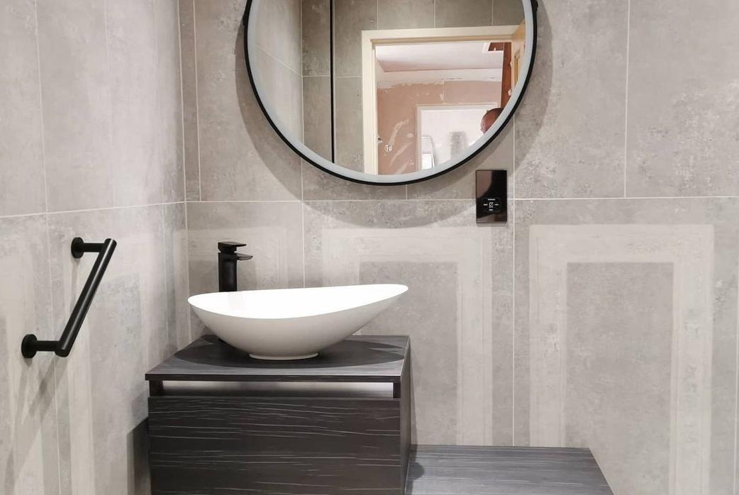 This high end project was undertaken by IP Kitchen and Design. Tiles from our modern and stylish SPECTRE collection were installed to the entire bathroom suite. This tile offers a raw industrial finish, this combined with the contemporary bathroom fittings create a super chic space that you would expect to find in the highest end of hotel. The grey and ivory tones offer a warm and inviting space whilst at the same time remaining edgy and unique.